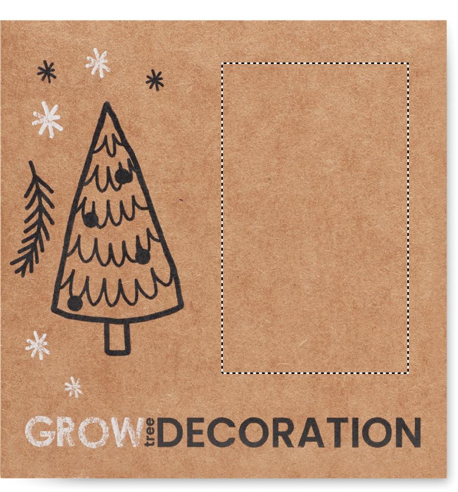 Puinen kuusen muotoinen koriste, jossa on juuttinarua ja kuusen siemeniä. Toimitetaan ruskeassa paperikuoressa.