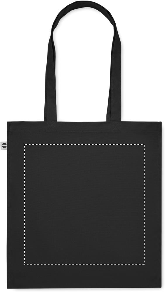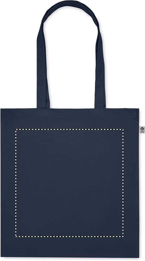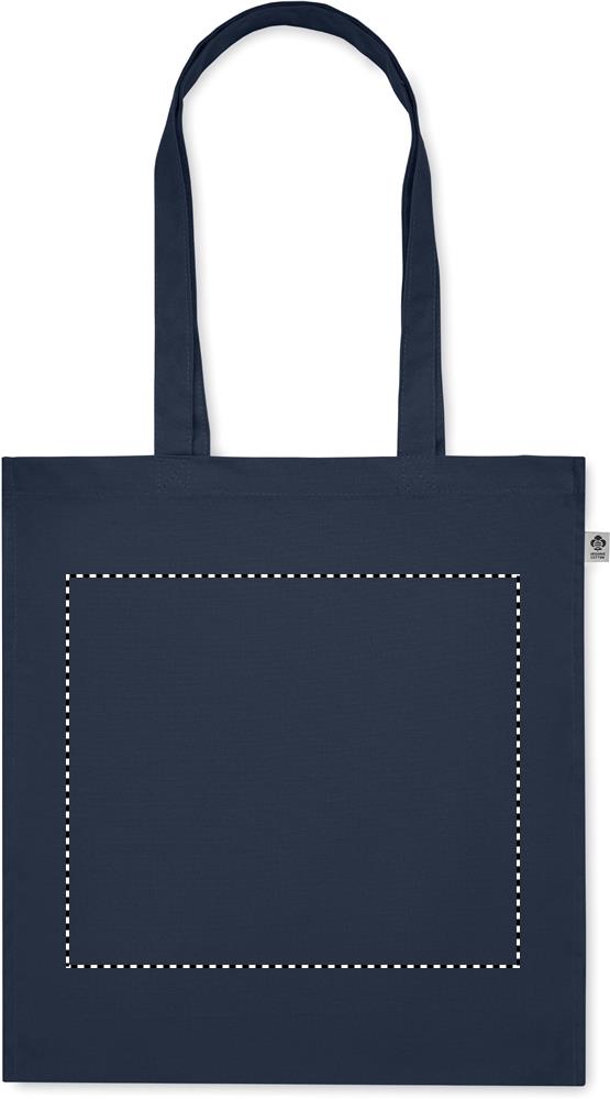 Luomupuuvillasta valmistettu ostoskassi, jossa on pitkät kahvat ja sivutaitteet. 220 gr/m².