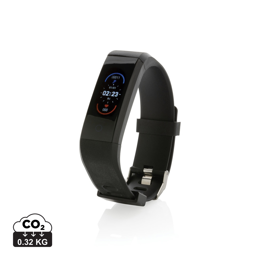 Tee mitä on parasta kehollesi tällä vedenkestävällä (IPX5) aktiivisuusrannekkeella, jossa on kierrätetystä TPU :stä valmistettu ranneke, joka takaa käyttömukavuuden. 0.96" helppokäyttöinen OLED kosketusnäyttö. Valmistettu RCS (Recycled Claim Standard) sertifioidusta kierrätetystä TPU :stä (ranneke) ja ABS-materiaalista (kehys). Kierrätetyn materiaalin kokonaismäärä: 35% perustuen tuotteen painoon. RCS sertifiointi varmistaa kierrätettyjen materiaalien täysin sertifioidun toimitusketjun. Sisältää sovelluksen, joka on saatavilla 6 kielellä, ja josta näet lisätietoa saavutuksistasi (iOS 8.1 ja Android 4.4. ja uudemmat). BT 5.0. Toimintoihin sisältyy: unenseuranta, askelmittari, etäisyys, kalorilaskuri, sykemittari, verenpaine, veren happipitoisuus, multi-sport -tila ja kameran ohjaus. Tämän tyylikkään aktiivisuusmittarin avulla astut terveellisempään elämäntapaan. Standby aika 15 päivää ja toiminta-aika jopa 7 päivää. Pakattu FSC® sekoituksesta valmistettuun kraft-pakkaukseen. PVC-vapaa.