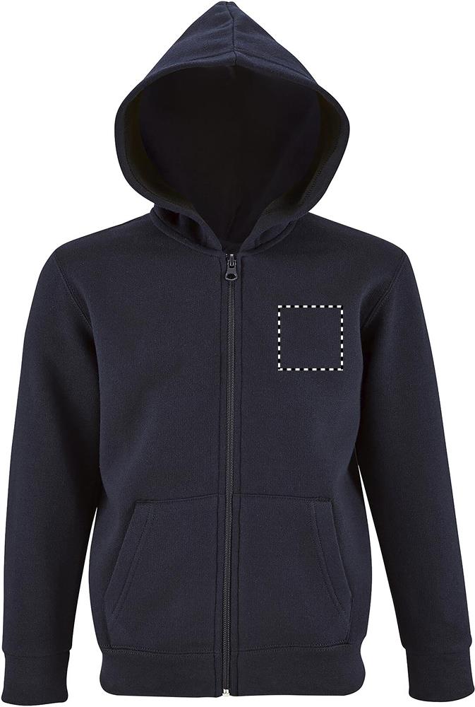 SOL'S STONE KIDS, KIDS' ZIP HOODIE, 50% rengaspunottu puuvilla - 50% polyesteri BRUSHED FLEECE 260, Asetetut hihat, 2 kengurutaskua, Huppu, Ribbed hihansuut ja pohja, Tubular. Kokojen yhteensopivuudesta, katso kokotaulukko tuotteen dokumentaatio-osassa.