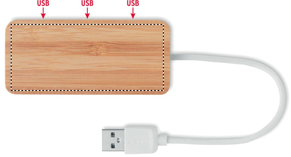 3 prievadų 2.0 USB šakotuvas bambukiniame dėkle. Kabelio ilgis 18,5 cm. Bambukas yra natūralus produktas, gali šiek tiek skirtis kiekvieno gaminio spalva ir dydis, o tai gali turėti įtakos galutiniam dekoravimo rezultatui.