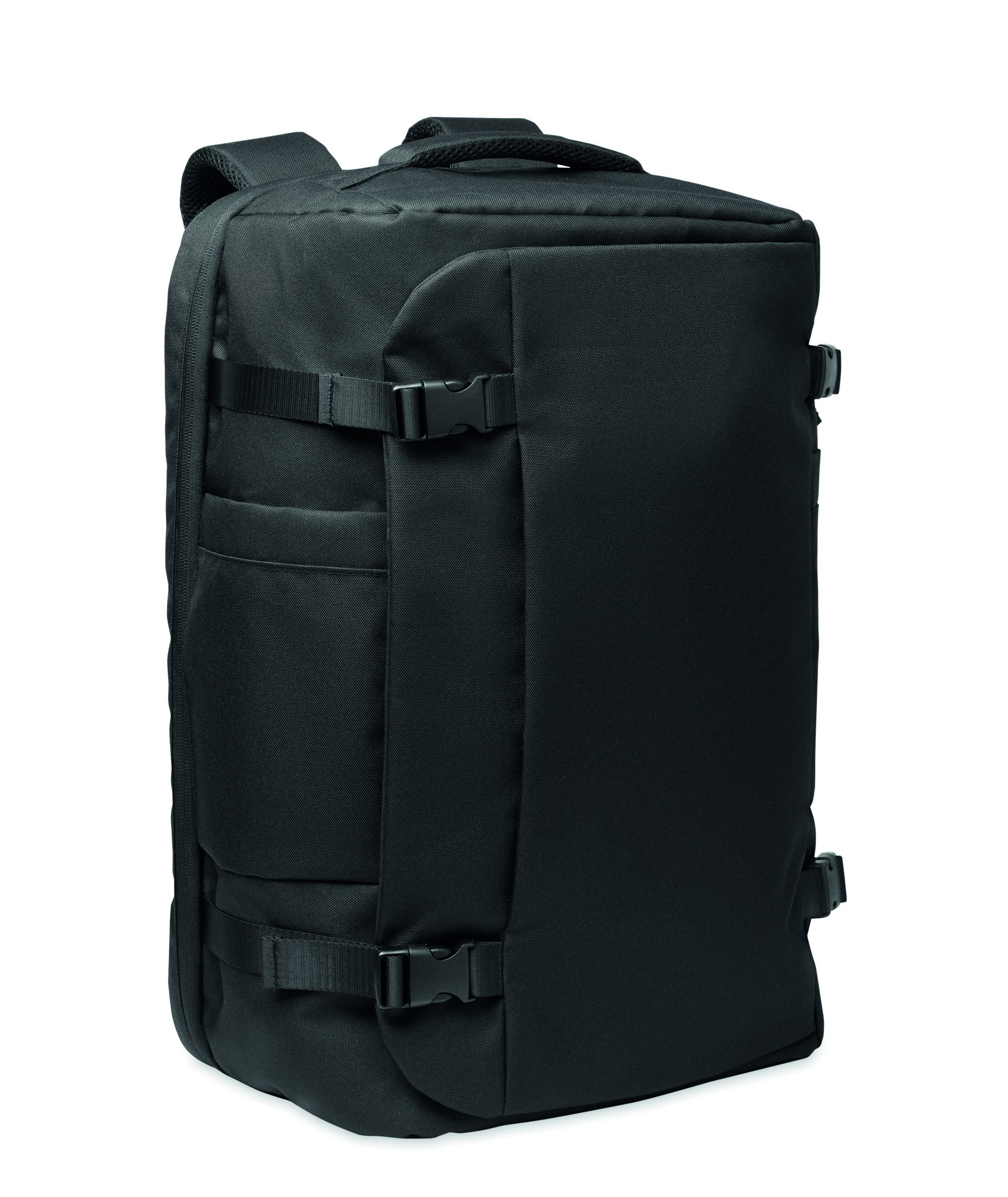 Didelė kelioninė 17 colių nešiojamojo kompiuterio kuprinė iš 600D RPET poliesterio. Turi kelis skyrius: vieną pagrindinį drabužiams, du paminkštintus nešiojamajam kompiuteriui, planšetiniam kompiuteriui ir kt. Paminkštinta nugarinė dalis, pečių dirželis, rankena.