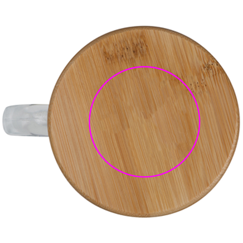 Dvisienis stiklinis 350ml talpos puodelis ir bambukinis dangtelis, ant kurio bus išgraviruotas Jūsų logotipas.