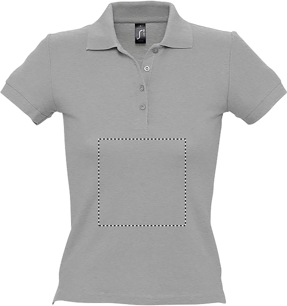 SOL'S PEOPLE, moteriški polo marškinėliai, 100% šukuota medvilnė 210, apykaklė ir rankogaliai, sutvirtinanti juosta ant kaklo, trumpos rankovės, prigludęs kirpimas, tonas ant 4 tono sagų kištukas, tiesus pakraštys su šoniniais skeltukais, iškirptas ir pasiūtas, (1 ) pilkas melanžas : 85 % medvilnė / 15 % viskozė. Apie dydžių atitikimą žr. dydžių lentelę gaminio dokumentacijos skyriuje.