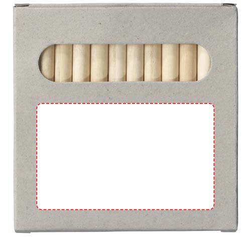 12 spalvotų pieštukų popierinėje dėžutėje. Dekoratyviniai komponentai negalimi.