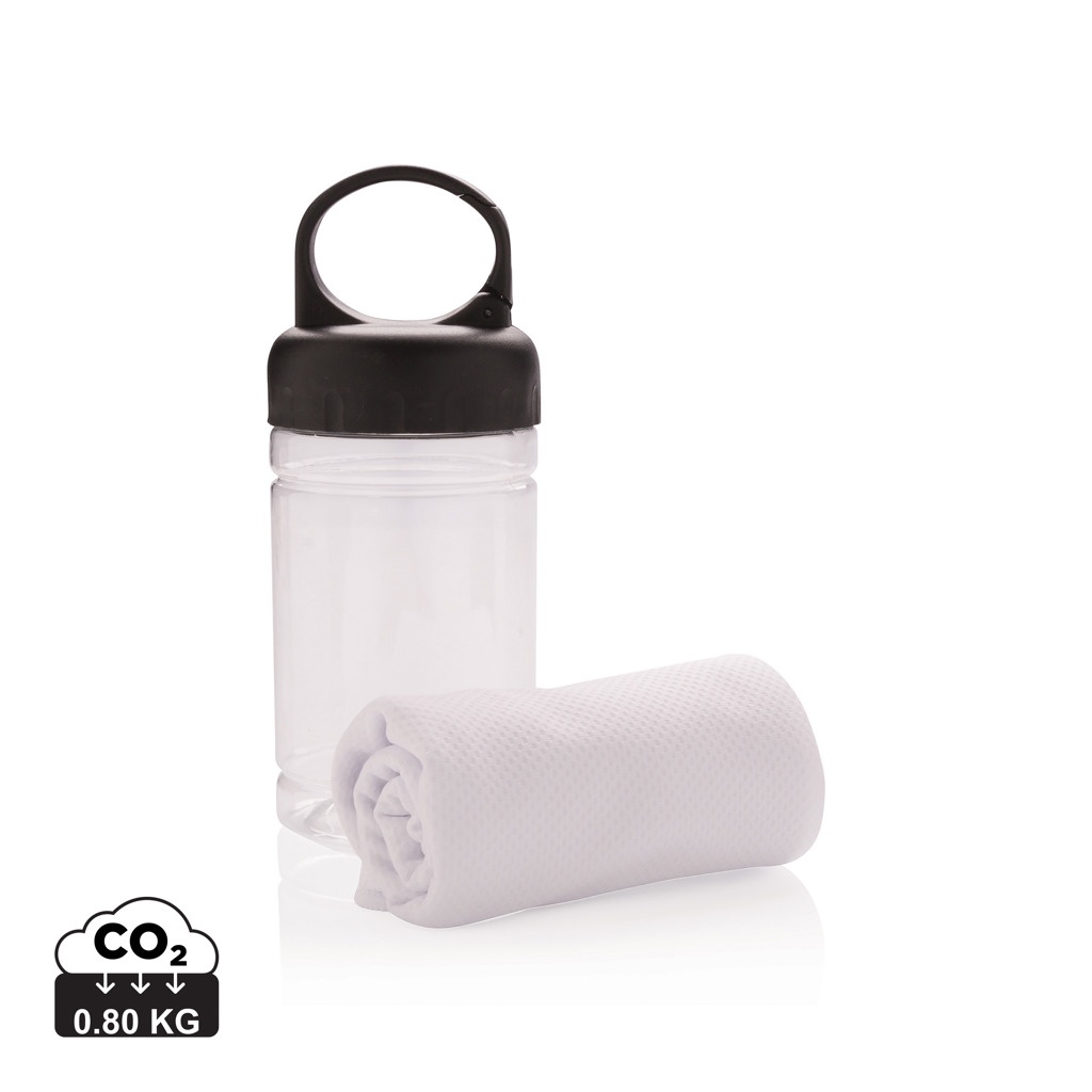 Mikrošķiedras dzesēšanas dvielis 100% bez ķimikālijām. 98% saules bloķēšanas funkcija līdz pat UV 50+ aizsardzībai. Dvieļu var viegli lietot, pievienojot pudelei nedaudz auksta ūdens, radot vēsu dvieli ātrai atsvaidzināšanai. Pudele ir izgatavota no PP ar ABS virsu un karabīni, lai to ņemtu līdzi āra aktivitātēm. 77x30 cm.
