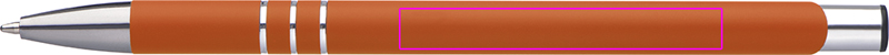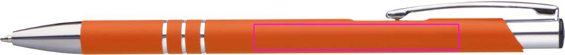 Plāna metāla lodīšu pildspalva ar gumijas apdari un zilas krāsas plastmasas pildījumu. Jūsu logotips tiks iegravēts zem klipa.