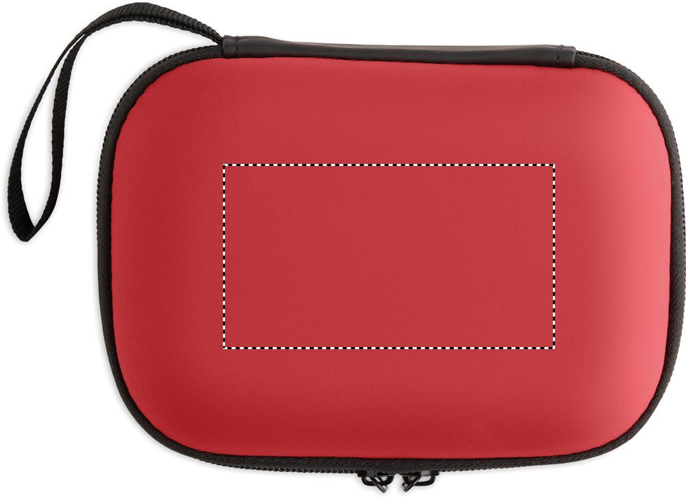Pirmās palīdzības aptieciņa cietā PU maciņā. Komplektā ietilpst 2 cimdi, 1 sega, 1 lente, 2 pārsēji, 1 šķēres, 4 vates tamponi, 10 plāksteri un 6 tīrīšanas salvetes. Nav pieejams pārdošanai ārpus ES.