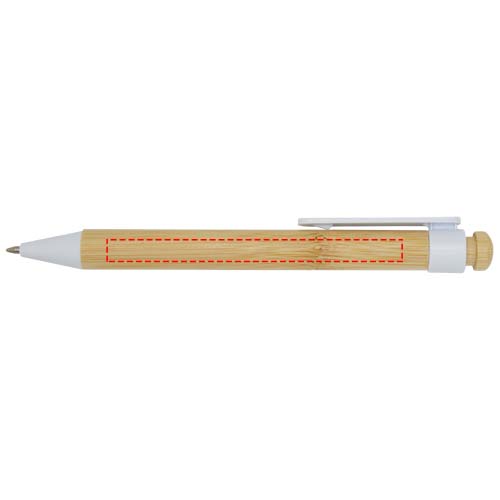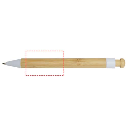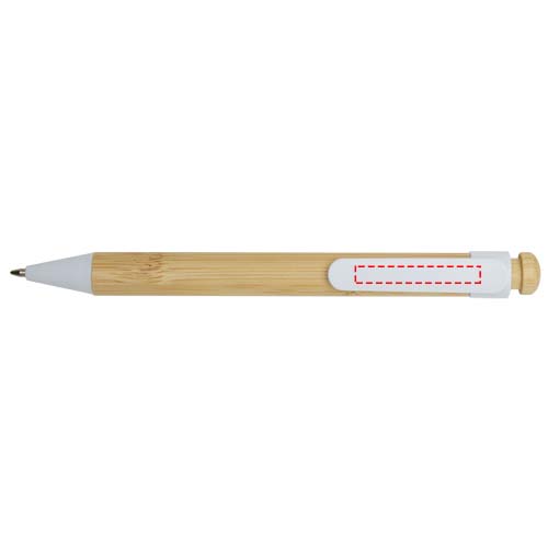 Lodīšu pildspalva ar klipsi un galu izgatavoti no otrreizēji pārstrādātas plastmasas, un poga un cilindrs ir izgatavoti no bambusa. Tintes krāsa: melna. Rakstīšanas garums: 1000 metri. Uzgaļa izmērs: 1,0 mm.