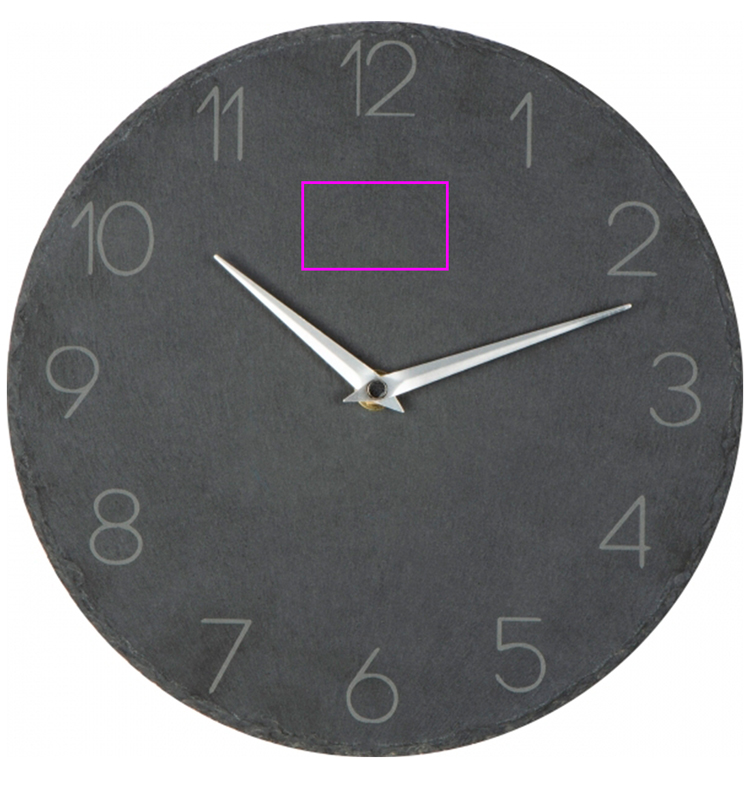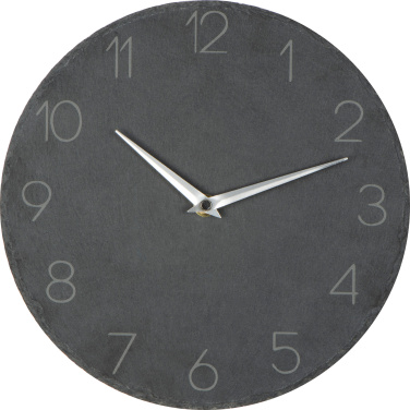 Elegants sienas pulkstenis no šīfera (dabiskā akmens) ar sudraba rādījumiem. Šis pulkstenis piesaista uzmanību katrā istabā! Jūsu logotips tiks iegravēts pulkstenī.