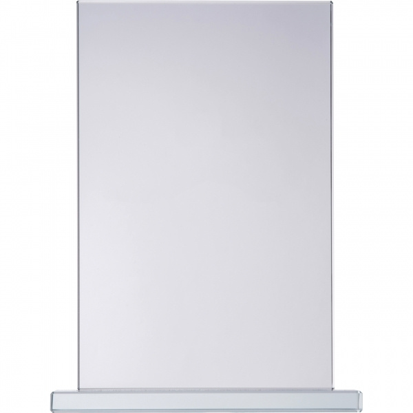 Stikla trofeja ar pamatni. Trofeja ir iepakota dāvanu kastītē ar satīna oderi un magnētisku aizdari. Jūsu logotips tiek uzspiests uz trofejas, izmantojot lāzergravējumu.