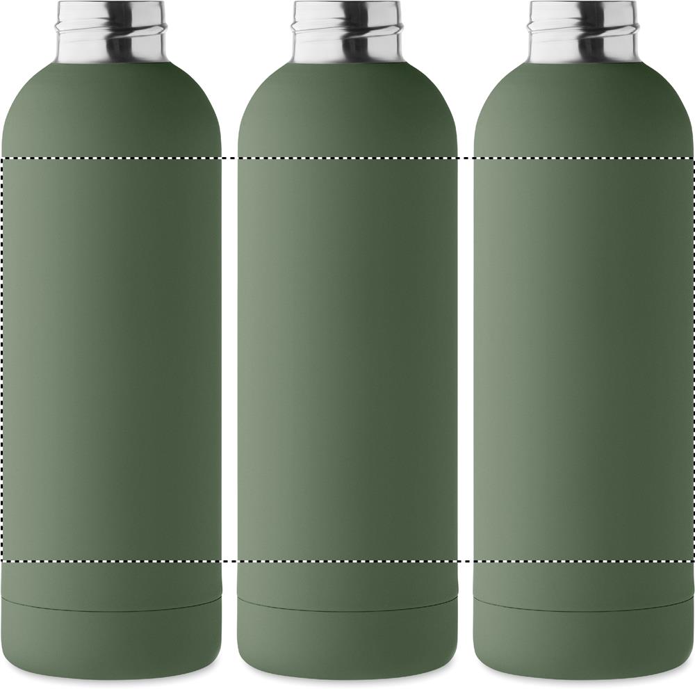 Бутылка с двойными стенками из переработанной нержавеющей стали (90%) и обычной нержавеющей стали (10%) с резиновым покрытием и силиконовым ремешком. Герметична. Объем: 500 мл.