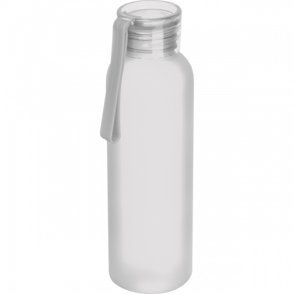 Бутылка для питья из ПЭТ с резиновой ручкой на крышке, объём 600 мл. Матовая поверхность бутылки приятна на ощупь. На бутылке напечатан ваш логотип.