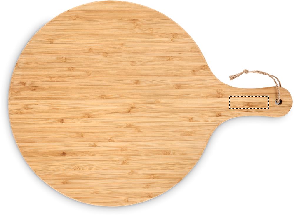 Разделочная доска из бамбука с удобной ручкой для сервировки. На джутовом подвесном шнурке. Ø31 см.