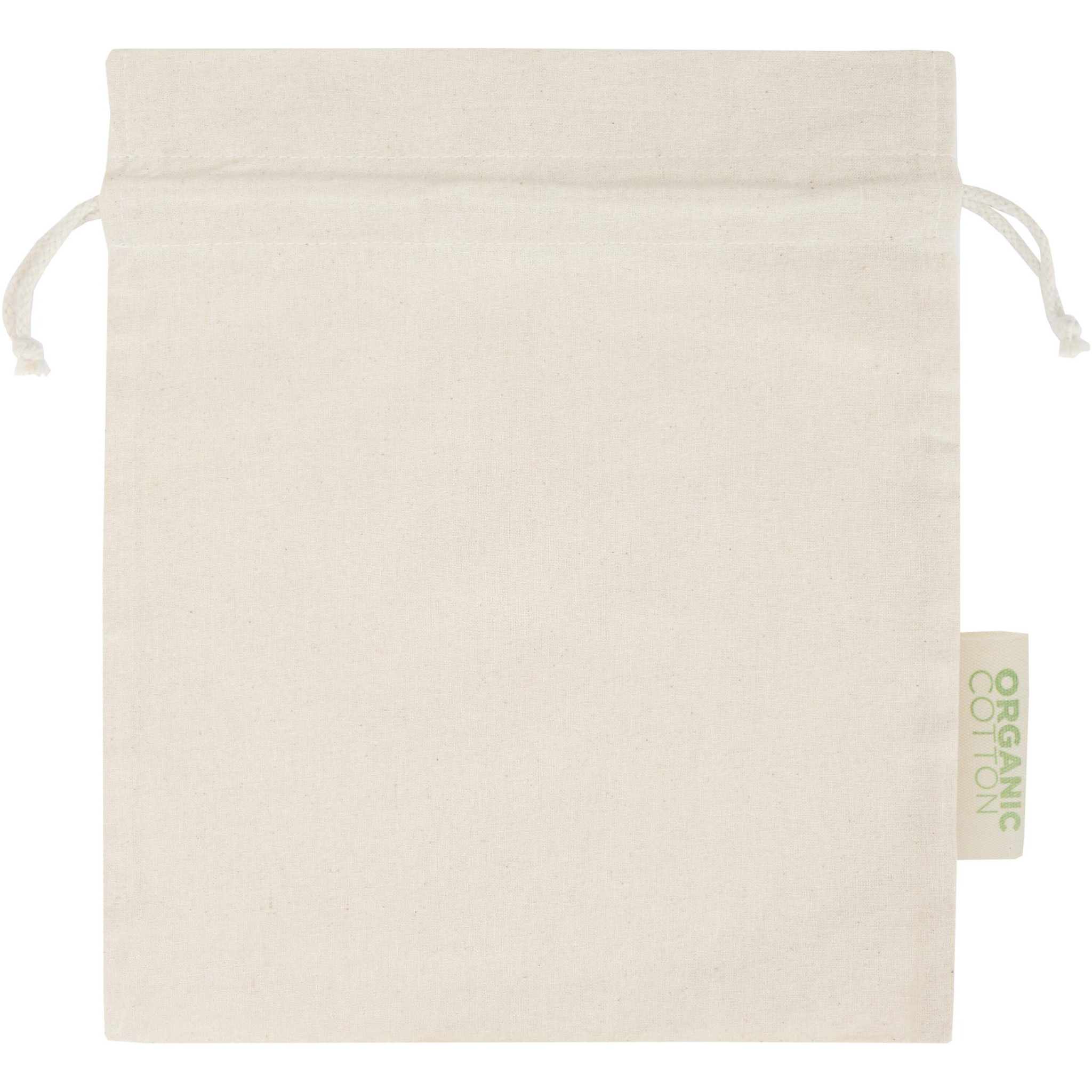 Подарочный пакет из 100% органического хлопка плотностью 140 г/м², сертифицированного OCS, с застежкой на хлопковый шнурок. Идеально подходит для подарков или хранения предметов. Размер: 30 x 25 см.