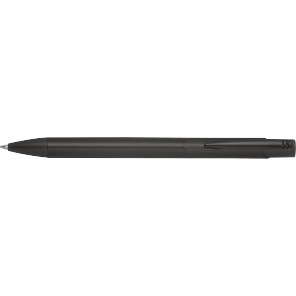 Полноцветная шариковая ручка из переработанного алюминия с синим стержнем увеличенной ёмкости. Ваш логотип наносится под зажимом с помощью лазерной гравировки.