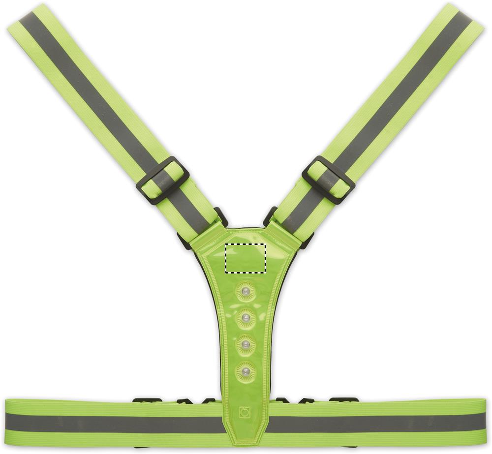 Регулируемый 360° светоотражающий пояс с 4 светодиодами спереди и 4 светодиодами сзади и серебристыми полосками. В комплекте 2 батарейки CR2032. Только для рекламного использования.