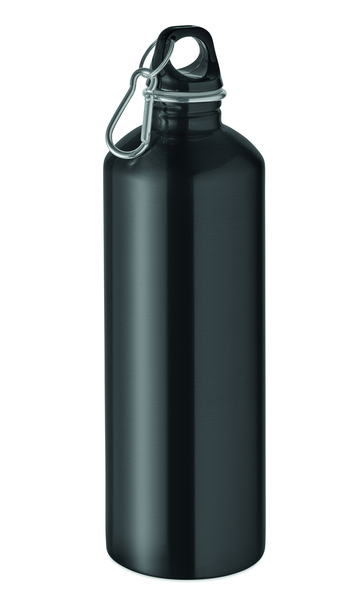 Single wall bottle (90% recycled stainless steel and 10% stainless steel) with a PP lid and carabiner. Capacity 1000 ml. As this is a single wall bottle, heat transfer can still occur.