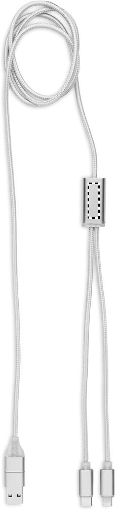 Laddningskabel i aluminium med ingång: 2-i-1 typ-C & typ-A och mikro-B (2 i 1 stift), typ-C och mikro-B utgång. Kabellängd: 120 cm.