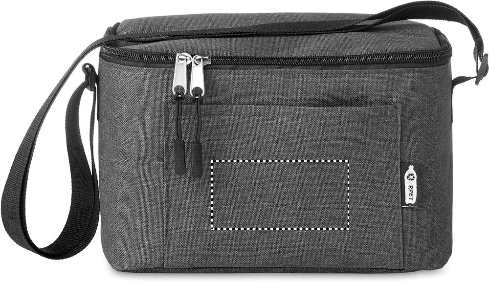 Kylväska för 6st burkar i 2 färgad 600D RPET med frontficka. Isolations material: 0.15mm PEVA + 3mm foam.