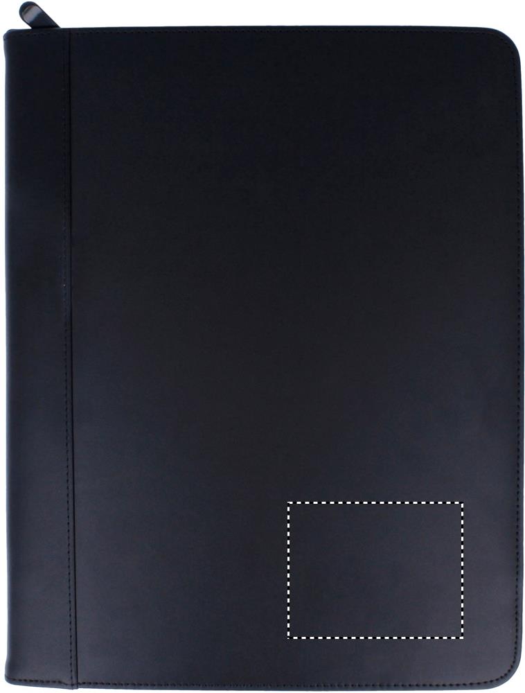Konferensmapp med dragkedja i läder med PU material invändigt. Innerfack och pennögla. Anteckningsblock A4 med 25 blanka blad.
