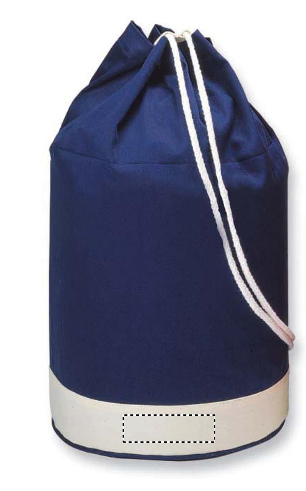 Marinblå seglarväska i bomullstwill med vit rand. 200gr/m2. Rymmer 6 liter.
