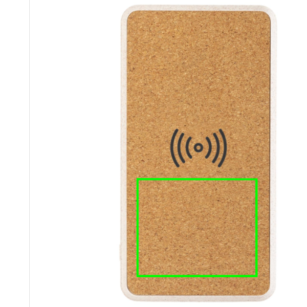 Logotrade presentreklam bild: Kork och vete 8.000 mAh powerbank med 5W trådlös laddning