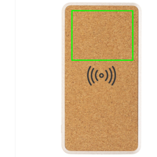 Logotrade reklamprodukter bild: Kork och vete 8.000 mAh powerbank med 5W trådlös laddning