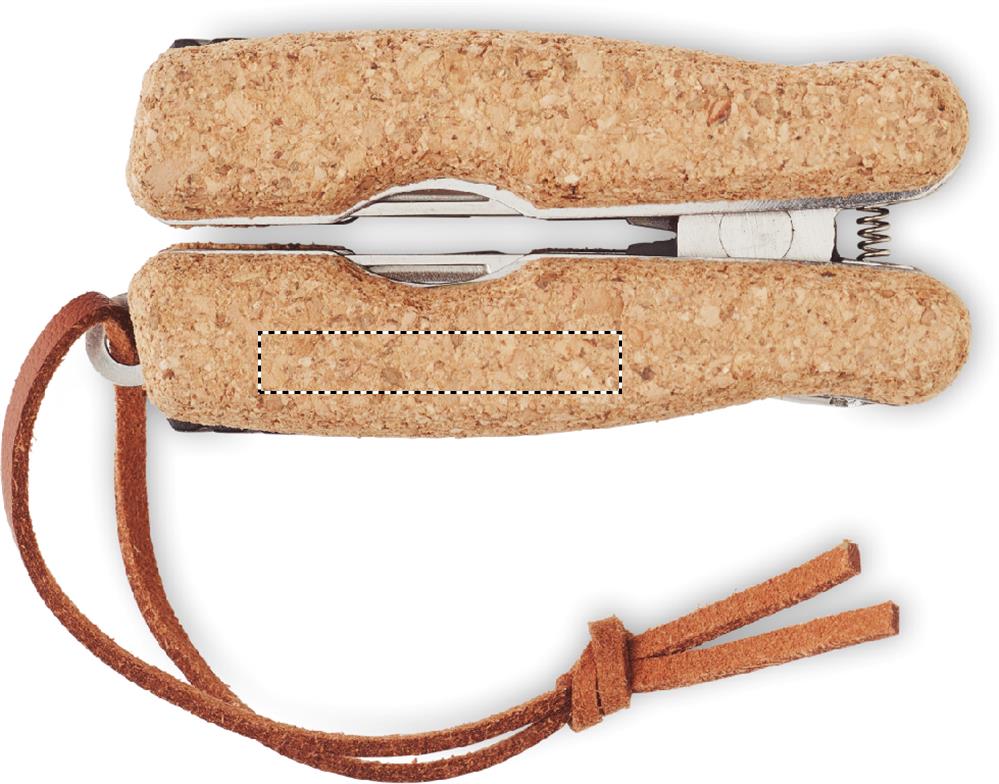 Fickkniv i rostfritt stål med flera funktioner, korkskydd och PU-handtag. 9 funktioner, innehåller: Tång, 2 öppnare, skruvmejsel med Philips-bits, sågblad, kniv, fil och skruvmejsel med platt bits.