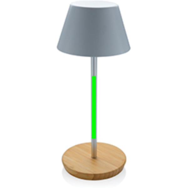 Lyxig bordslampa tillverkad av RCS-certifierad återvunnen ABS-plast, återvunnen aluminium och FSC-certifierad 100% bambu. Totalt återvunnet innehåll: 40% baserat på total produktvikt. RCS-certifiering garanterar en helt certifierad leveranskedja för de återvunna materialen. Bordslampan fungerar upp till 12 timmar på en enda laddning och kan laddas om på 2 timmar. Med ett 1.800 mAh-batteri av a-klass och type C-input ( 5V/1A) Med två lägen (varmt ljus och vitt ljus) som kan justeras med hjälp av en beröringssensor i basen. Uppladdningsbar via USB-C. IPX4 vattentät. Levereras i FSC® mix-förpackning.