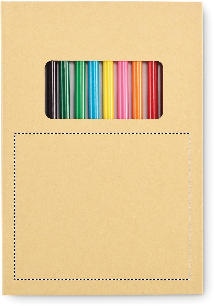 Teckningsset för barn med 50 ark av återvunnet papper och 12 färgpennor av trä. FSC®-certifierade material med omslag av kraftpapper.