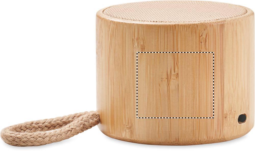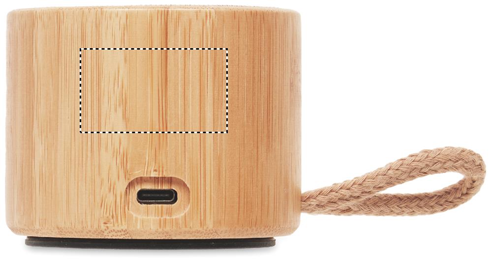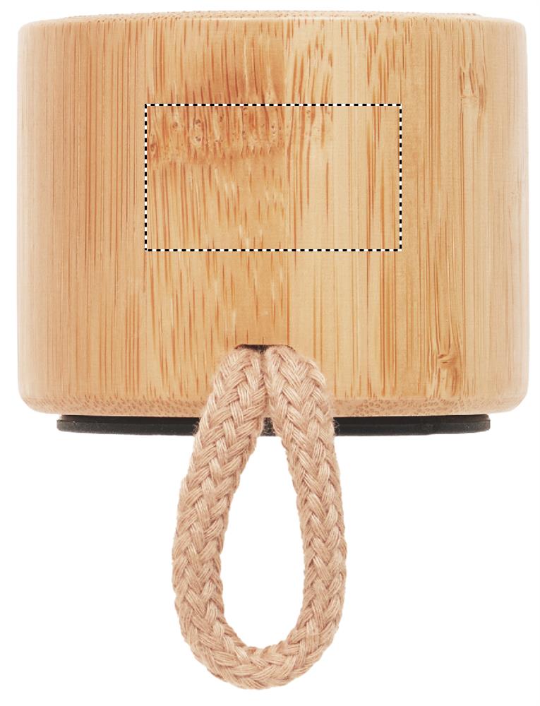 5.1 trådlös högtalare i ABS med bambuhölje, bomull på ovansidan och upphängningsögla. Den har en LED-ljusindikator. 1 uppladdningsbart Li-POL 300 mAh-batteri ingår. Innehåller en port för SD-kort och en AUX/USB-kabel. Hands free call-funktion. Uteffekt: Utgångsdata: 3W, 3 Ohm och 5V. Speltid ca. 3 timmar.