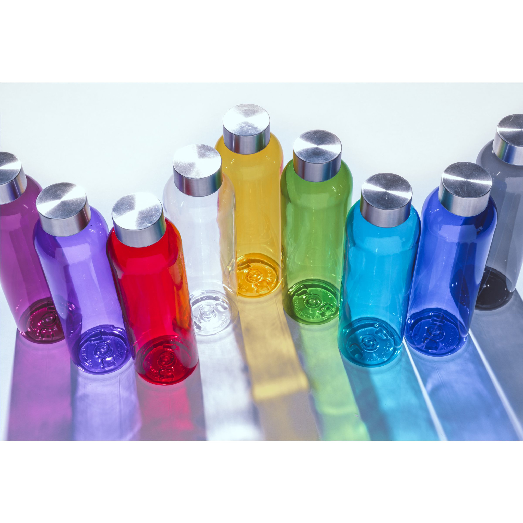 Transparent, BPA-fri vattenflaska av PCTG SK-plast. Med skruvlock i rostfritt stål. Den eleganta designen fångar ögonen direkt och är extremt bekväm. Läcksäker. Kapacitet 650 ml.