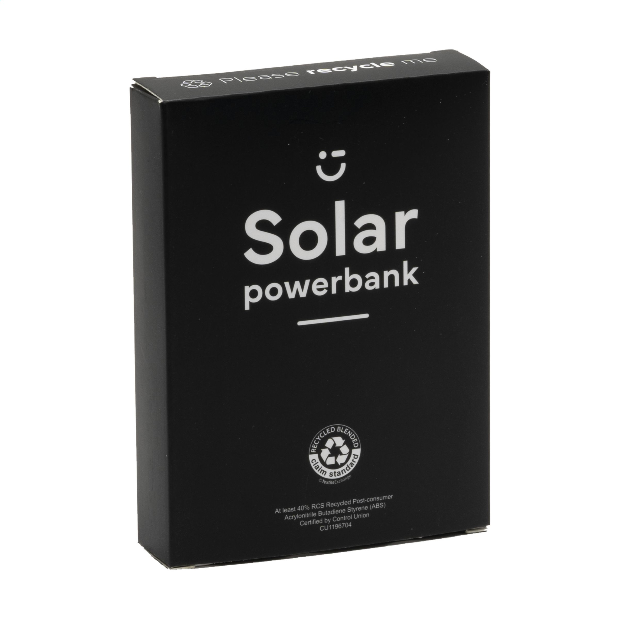Kraftfull kraftbank med hög kapacitet med solpanel och inbyggt uppladdningsbart polymerbatteri (4000mAh). Kan laddas med solenergi eller elnät (via USB-port). Höljet är tillverkat av återvunnet ABS. Ingång: 5V/1A. Utgång: 5V/1A. Inkluderar laddningskabel med USB-C-anslutning, USB-C-kontakt och bruksanvisning. RCS-certifierad. Totalt återvunnet material: 40%. Varje föremål är individuellt förpackad.