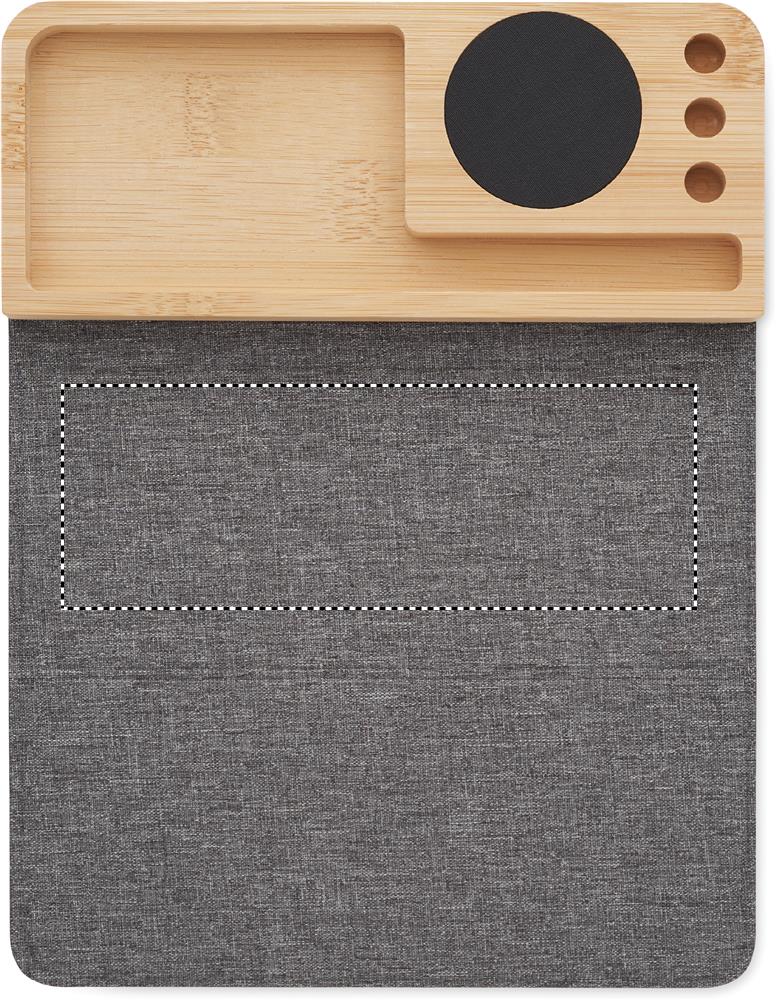 Trådlös laddare och skrivbordsorganisatör i bambu med telefonställ, 3 pennhållare och vikbar RPET-musmatta. Uteggekt: DC 9V/1,67A (15W). Kompatibel med alla QI-aktiverade enheter, t.ex. senaste Android, iPhone® 8, X och nyare.