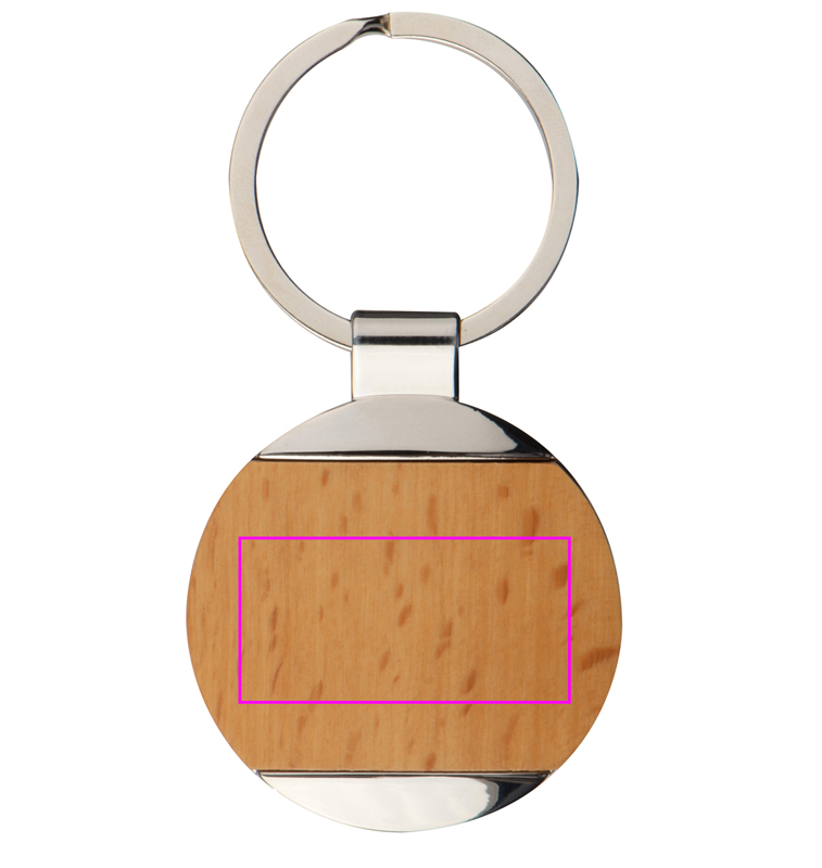 Elegant nyckelring av metall med en träinsats på vilken din logotyp kommer att graveras.