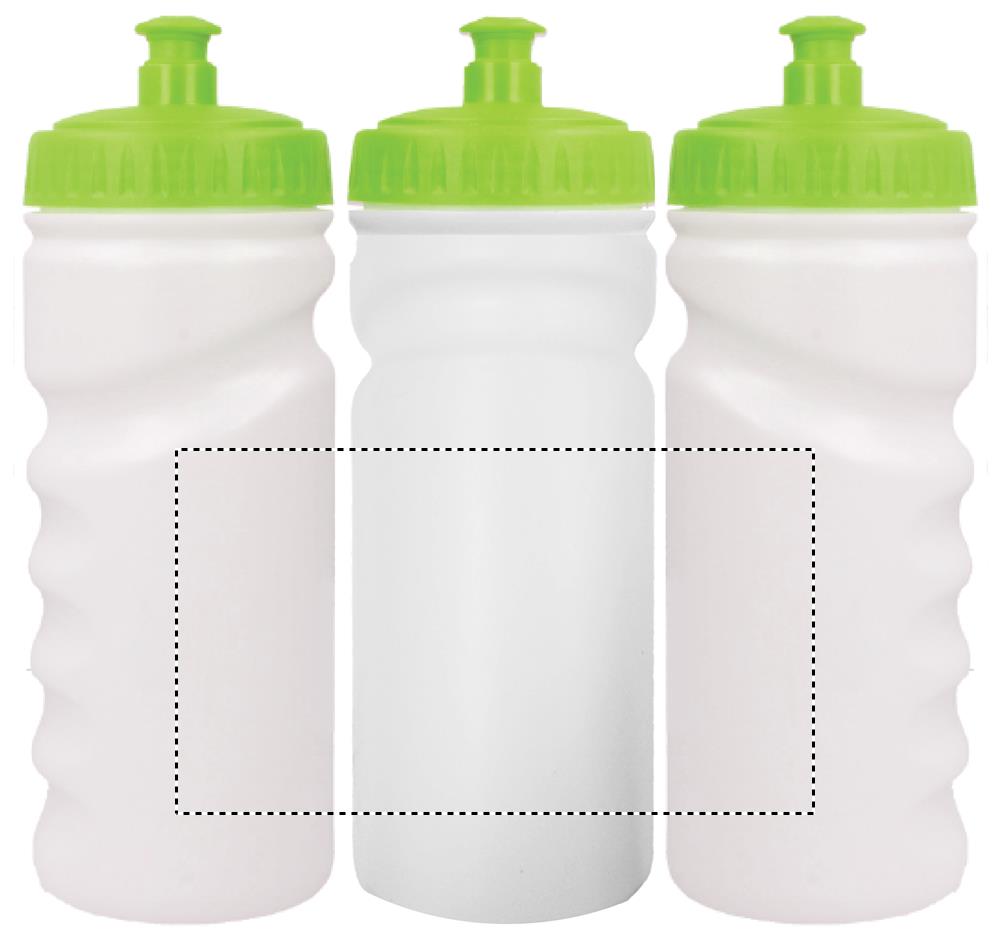 Sportig vattenflaska med bekväm handtag format efter handen. Material i fast PE-plast. Kapacitet: 500 ml. Läckagefritt.